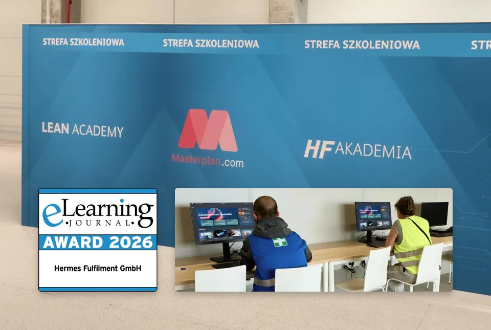 Und die Maßnahmen haben sich gelohnt: Das eLearning Journal zeichnete Hermes Fulfilment für ihre Lernprojekte im gewerblichen Bereich mit einem Award in der Kategorie „Lernplattformen“ aus!